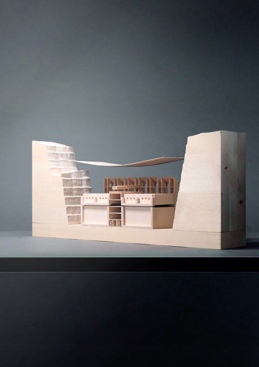 Prosjektet, et avløpsrenseanlegg på Langøya i et tidligere kalksteinsbrudd, utforsker hvordan omfattende, men nødvendige infrastrukturanlegg kan innpasses i landskapet uten å beslaglegge verdifulle naturarealer, og hvordan arkitekturen kan gi innsyn i prosessene som er avgjørende for fjordens fremtid.